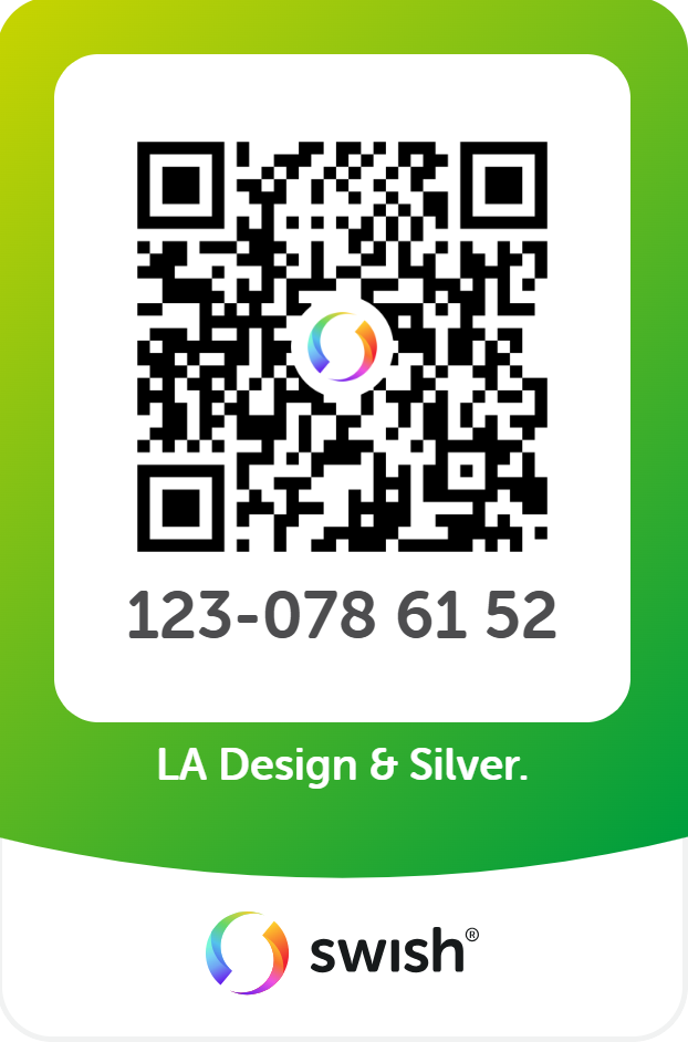 LeveransDin beställning skickas så fort det är färdigt för leverans. Allt från 2 till 10 arbetsdagar. Beroende på smyckets komplexitet och material.